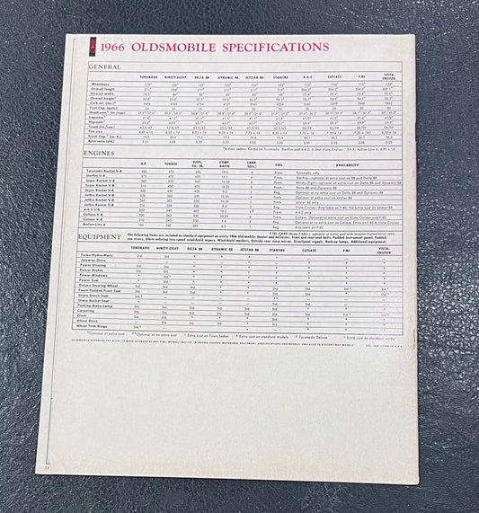 1966 Original Oldsmobile Tornado Starfire 442 98 88s Cutlass Brochure