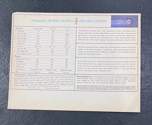 1966 Original Oldsmobile Sports Model Tornado Starfire 442 Brochure